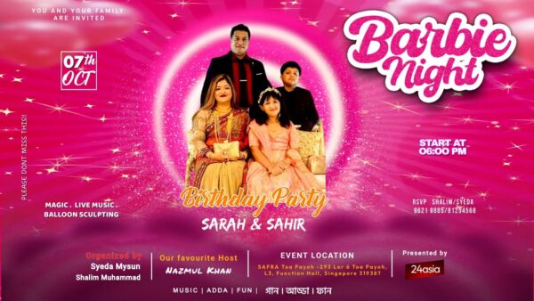 Sarah ও Sahir এর জন্মদিন উদযাপন হচ্ছে ২০২৩ সালে। এই বিশেষ দিনে পরিবারের সদস্য ও বন্ধুজনরা একত্রিত হয়ে আনন্দ ভাগাভাগি করে। জন্মদিন বলয়টি ছিল আনন্দময় এবং স্মৃতিময় মুহূর্তে পূর্ণ। সুহৃদদের উপস্থিতি বিশেষ উপহার বিনিময় মজাদার খাবারের আয়োজন সঙ্গীত ও নৃত্যের… Continue Reading →
